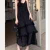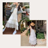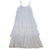 A soft, tiered sundress crafted from a lightweight cotton and chiffon blend that moves with you like a summer breeze. The semi-sheer layers are delicately trimmed with lace, giving the dress a dreamy, romantic look. Designed with adjustable spaghetti straps and a flattering V neckline, this midi dress is perfect for warm weather.