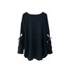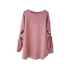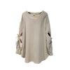Effortlessly chic with a playful twist, this bow-sleeve top adds feminine charm to your everyday wardrobe. Crafted from a soft, comfortable knit fabric, it features cut-out details along the sleeves tied with dainty bows — a perfect balance of casual and elegant. The relaxed fit and rounded hem make it ideal for pairing with leggings, jeans, or skirts for a polished yet easygoing look.