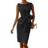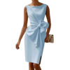Chic and sophisticate sheath dress is the epitome of modern femininity. Featuring a sleek sleeveless design and an asymmetrical drape that cascades into a beautifully sculpted oversized bow at the waist, this dress flatters the silhouette while adding a statement touch. Perfect for weddings, cocktail parties, or formal events, it effortlessly balances grace and style.