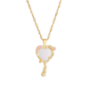 Step into a fairytale with this charming alloy metal necklace, available in both glowing gold and sleek silver finishes. The heart-shaped mirror pendant is beautifully framed with delicate scrollwork and soft pink accents, evoking the elegance of a vintage hand mirror. Lightweight and perfect for everyday magic, this necklace is a dreamy statement piece for coquette and romantic styles.