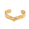 Bold yet refined, this hammered cuff bracelet is crafted from durable stainless steel with a stunning 18K gold plating or polished silver finish. The textured surface and sleek V-shaped dip create a modern, artisanal vibe that effortlessly elevates your look. Its open design ensures a comfortable, adjustable fit — perfect for making a statement on any occasion.