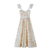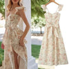 This beautiful summer dress is a romantic and feminine piece, perfect for any event—from garden parties to outdoor weddings. Crafted from a light, breathable fabric with a charming floral print, it features ruffled shoulder straps, a flattering sweetheart neckline, and a cinched waist tied with a soft bow for added elegance. The high slit adds a touch of allure while keeping it effortlessly breezy and comfortable. Whether you're dressing up for a daytime celebration or a sunset soirée, this dress brings timeless charm and graceful movement to every moment.