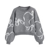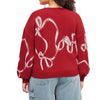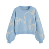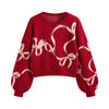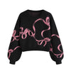 A statement in soft luxury, features a dreamy ribbon pattern that swirls playfully across the front and back. Designed for both comfort and charm, it’s crafted from a plush, cozy blend that feels gentle on the skin while holding its shape beautifully. The slightly cropped silhouette and voluminous sleeves add a touch of modern femininity, making it the perfect piece to pair with jeans, skirts, or tailored trousers. Effortlessly chic — equal parts cozy and coquette.