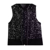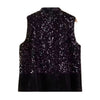 This show-stopping sleeveless top fuses glam sophistication with modern structure. Crafted from a luxurious mix of satin and cotton, it features a shimmering sequin overlay that adds a bold, eye-catching sparkle. The high Mandarin collar and sculptural front ties lend an elevated, East-meets-West edge, while the crisp satin hem anchors the piece with refined tailoring. It’s the ultimate statement top—perfect for night outs, cocktail events, or layering with tailored pants for a chic contrast.