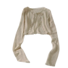 This delicate, ultra-soft cardigans is the perfect lightweight layer for breezy summer nights. Designed in a creamy ivory hue, it features a cropped silhouette with sweet ruffle trim along the edges and an adjustable front tie for a romantic, feminine touch. The semi-sheer knit keeps it breathable and airy—ideal for tossing over dresses or sleeveless tops at outdoor events, dinners by the water, or garden parties.