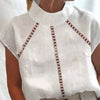 Chic tops, crafted from a breathable cotton-linen blend, offer the perfect balance of comfort and elegance. With their high collars, relaxed fit, and delicately embroidered front panels, they bring a refined yet easygoing silhouette that’s ideal for workdays or casual gatherings. The openwork detailing adds a touch of texture and modern polish, while the airy construction keeps things light and breezy. These tops are an effortless staple for warm-weather dressing—equally at home tucked into trousers or flowing loose over denim.