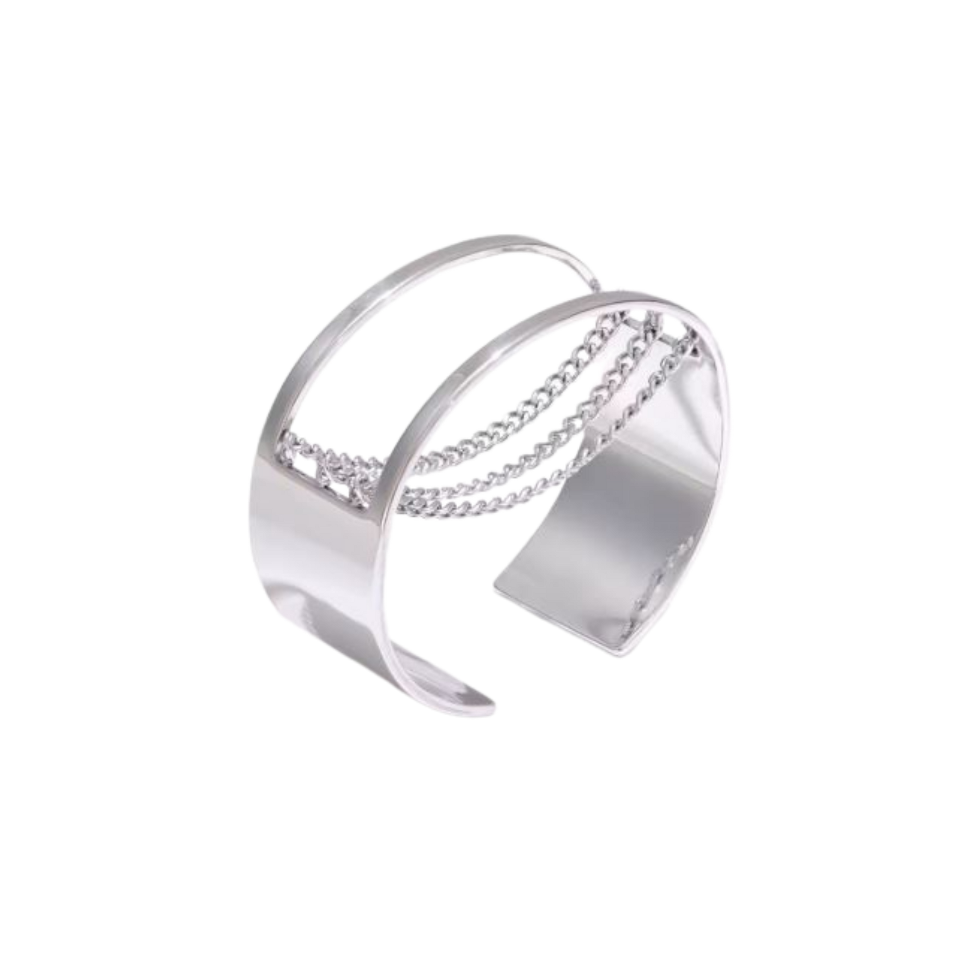 Sleek, edgy, and modern—this open cuff bangle redefines minimalism with attitude. Crafted from premium stainless steel and available in both 18K gold-plated and silver-tone finishes, it features layered chain detailing for a bold yet wearable look. Bold, modern, and fashion-forward. The open structure allows for adjustable tightness, giving you a secure and comfortable fit tailored to your wrist.
