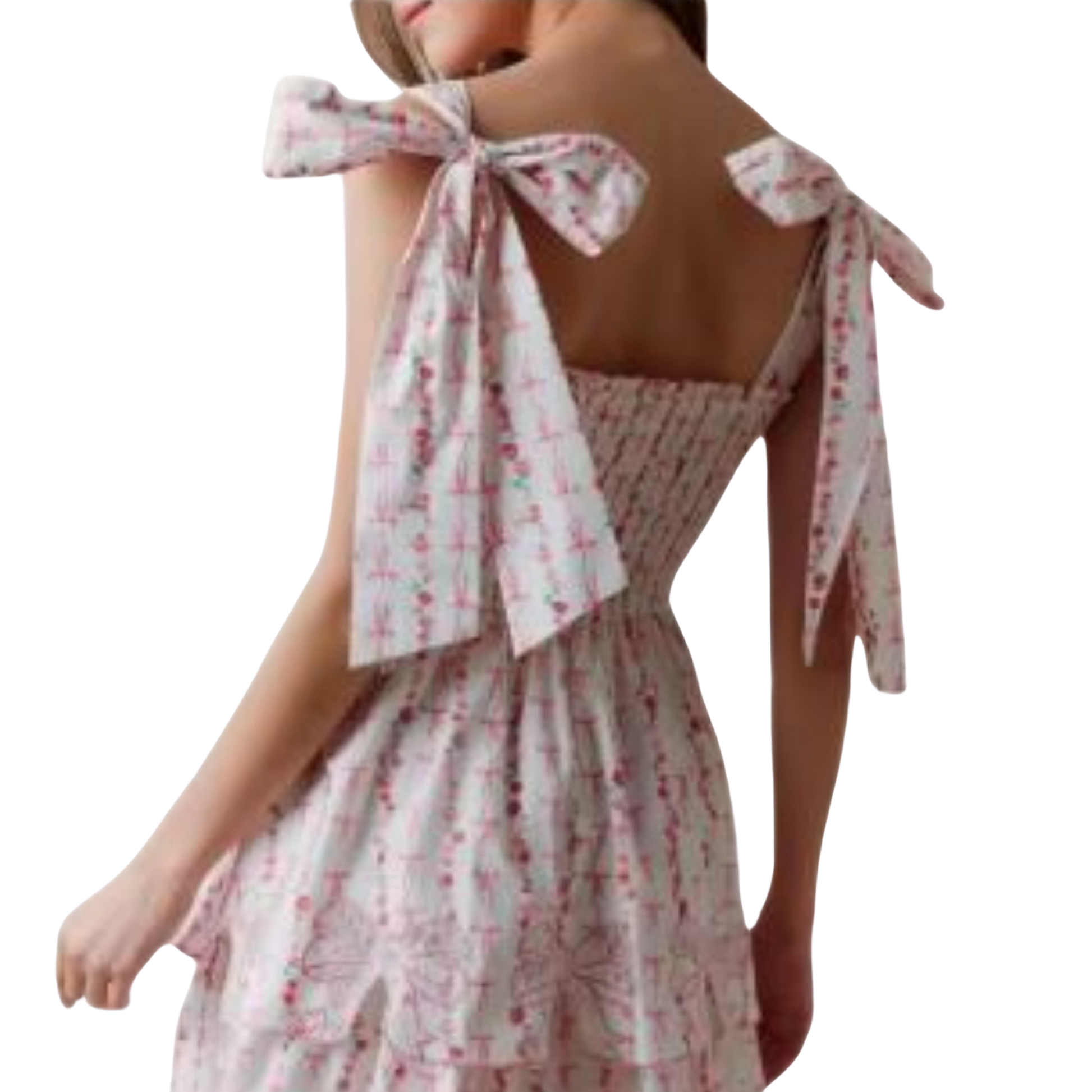 The smocked bodice hugs comfortably while the tiered skirt flares gently, creating a silhouette that’s both playful and flattering. Whether you're picking flowers, sipping iced tea, or strolling through a Sunday market, this dress adds a touch of sweetness to every step.