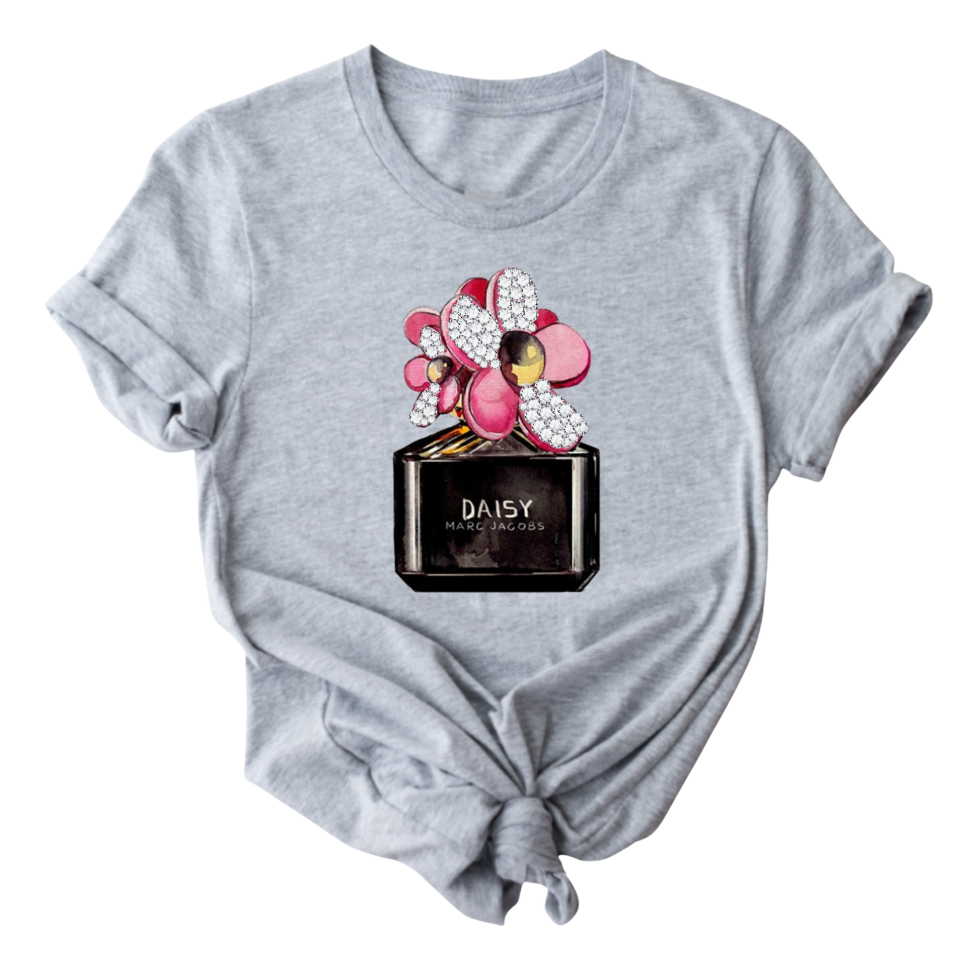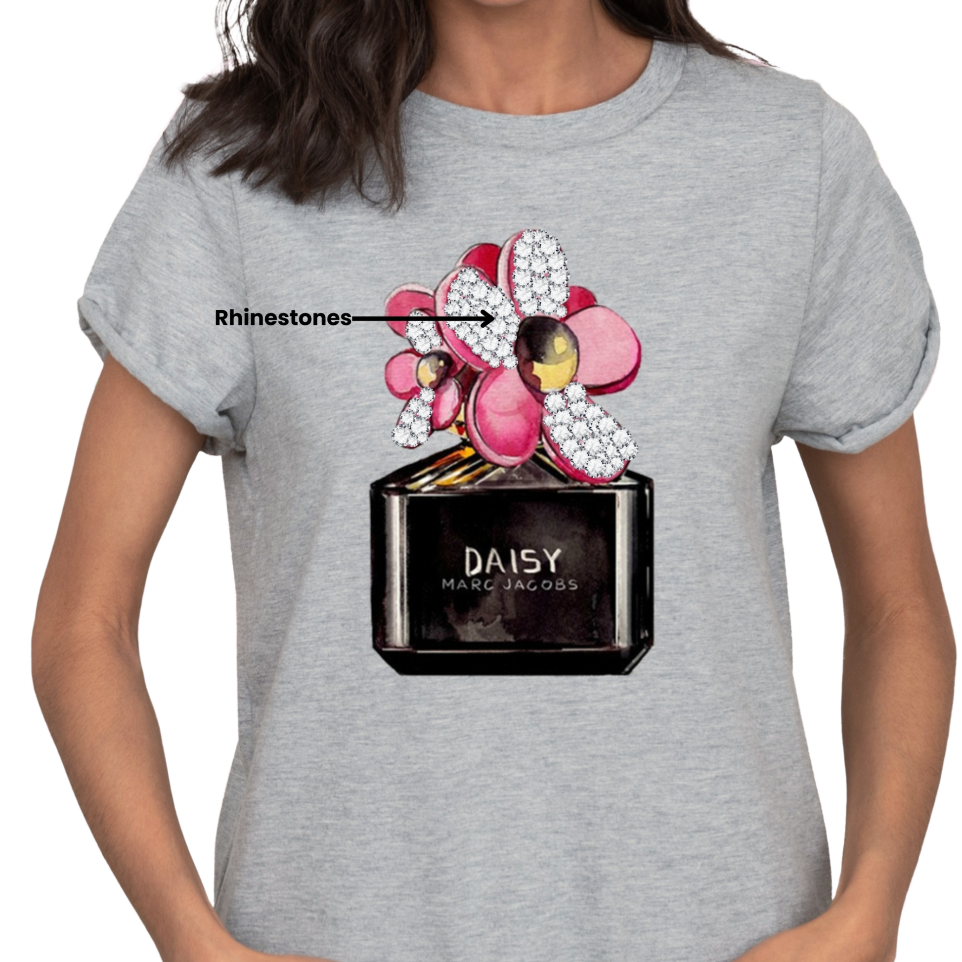 This exquisite perfume bottle design is adorned with sparkling rhinestones, adding a touch of elegance and glamour.
