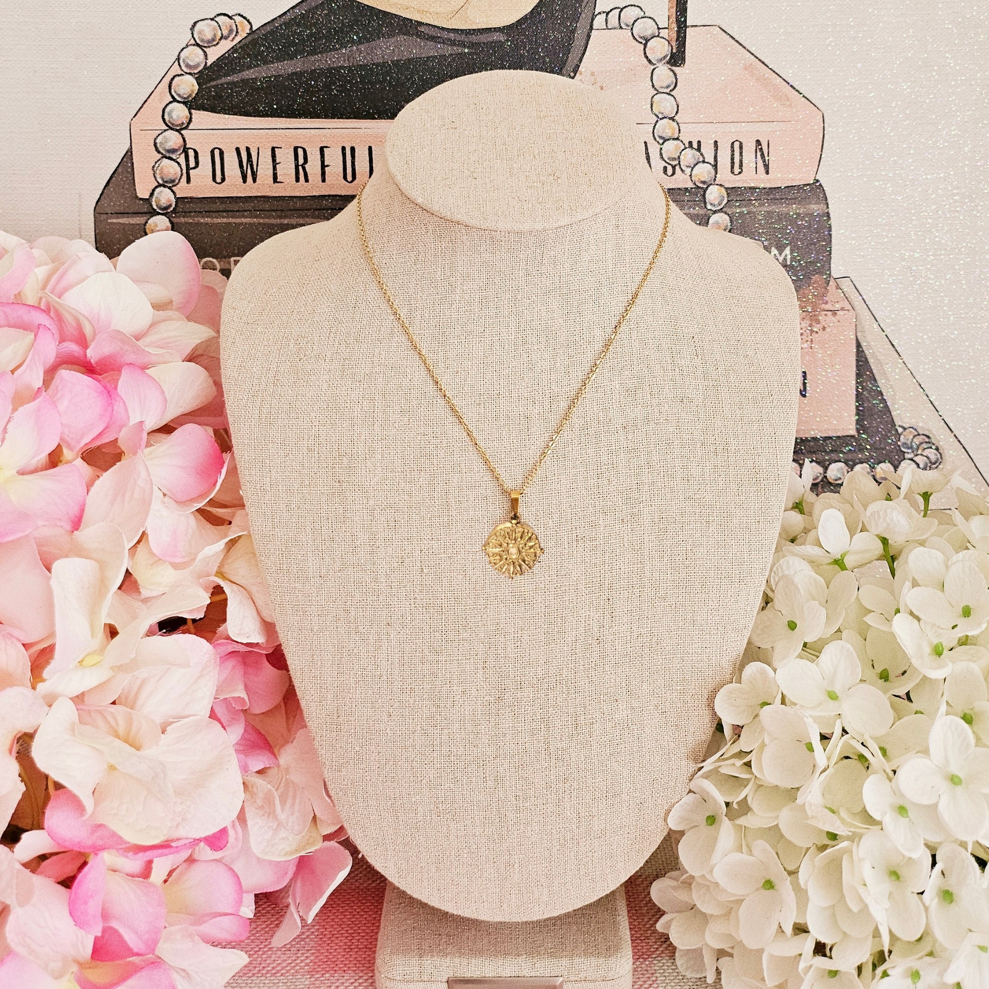 Unique design in stainless steel, 18K gold plated chain and pendant Hypoallergenic. Adjustable chain (16-18.5 inches).